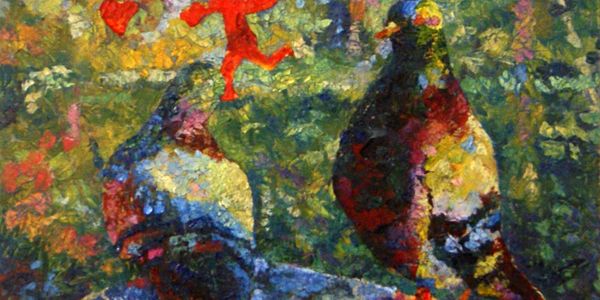 Invites viewers to engage in a world of fantasy and intrigue, revealed through her joyful and playful handling of colour and paint. Yet there is also anger “a deep seated fury at the vicissitudes and injustices of modern existence”
